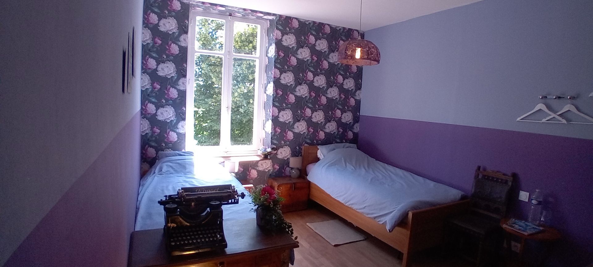 The Jeanne d'Arc room is a double room (bed 140cm x 200cm) with a compact bathroom, which overlooks the garden. From the window, a beautiful view of the two linden trees awaits you. Facing west, you will have the opportunity to admire the sunset.